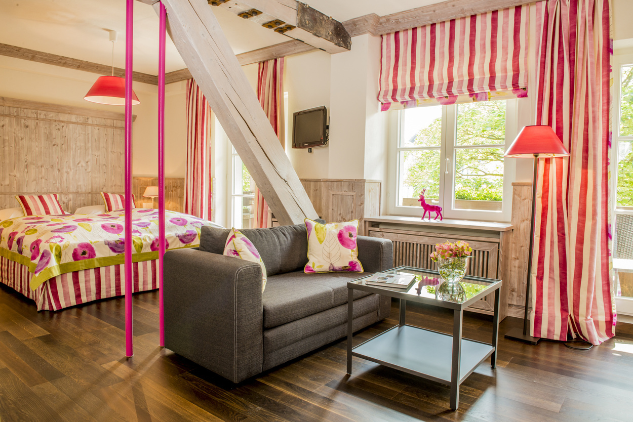 6 Einzelzimmer, 16 Doppelzimmer und 3 Suiten