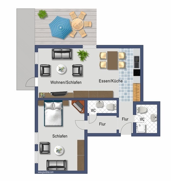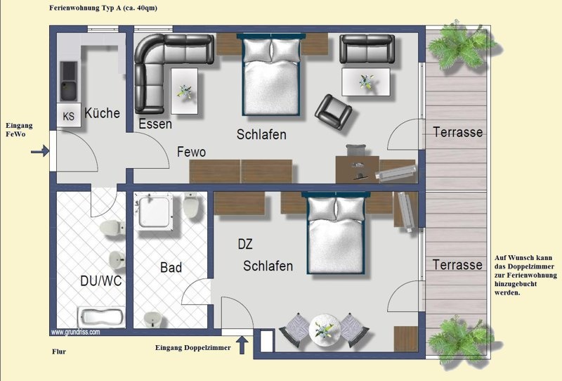 Ferienwohnung Schwarzwald mit Terrasse, Typ B (60qm): 2 bis 5 Personen: