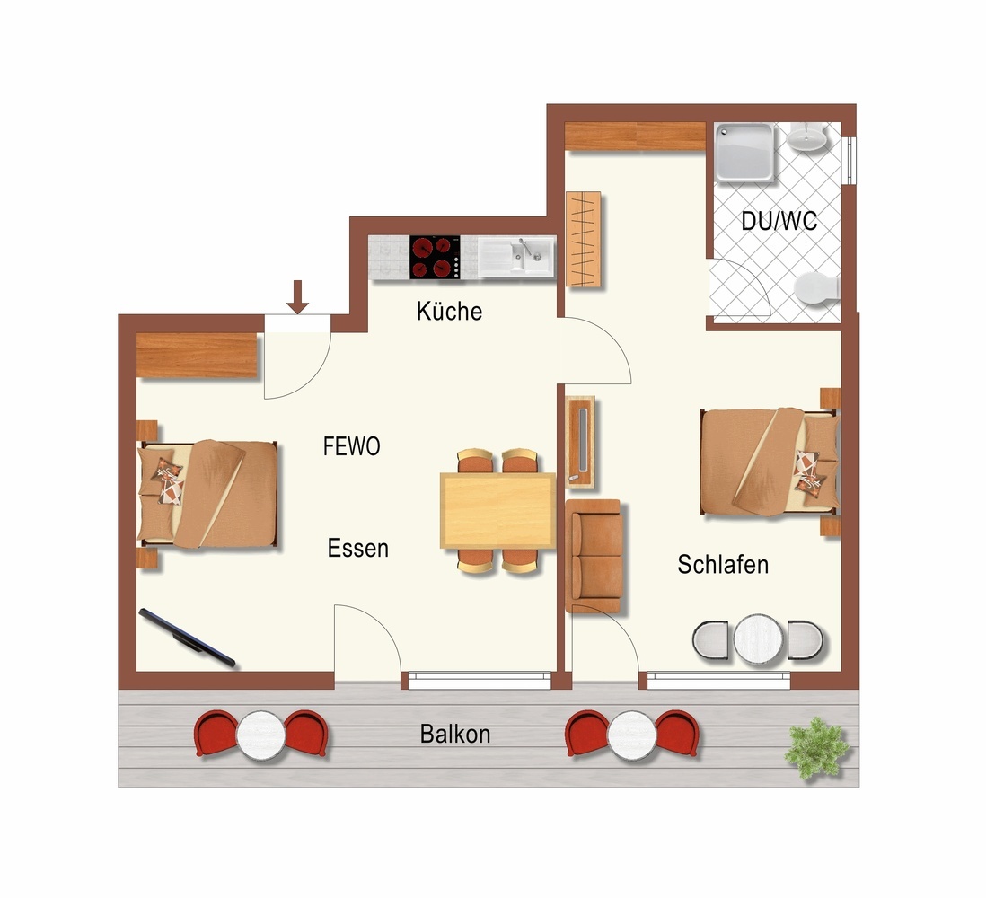 Ferienwohnung Belchen mit Balkon, Typ B (60qm): 2 bis 5 Personen: