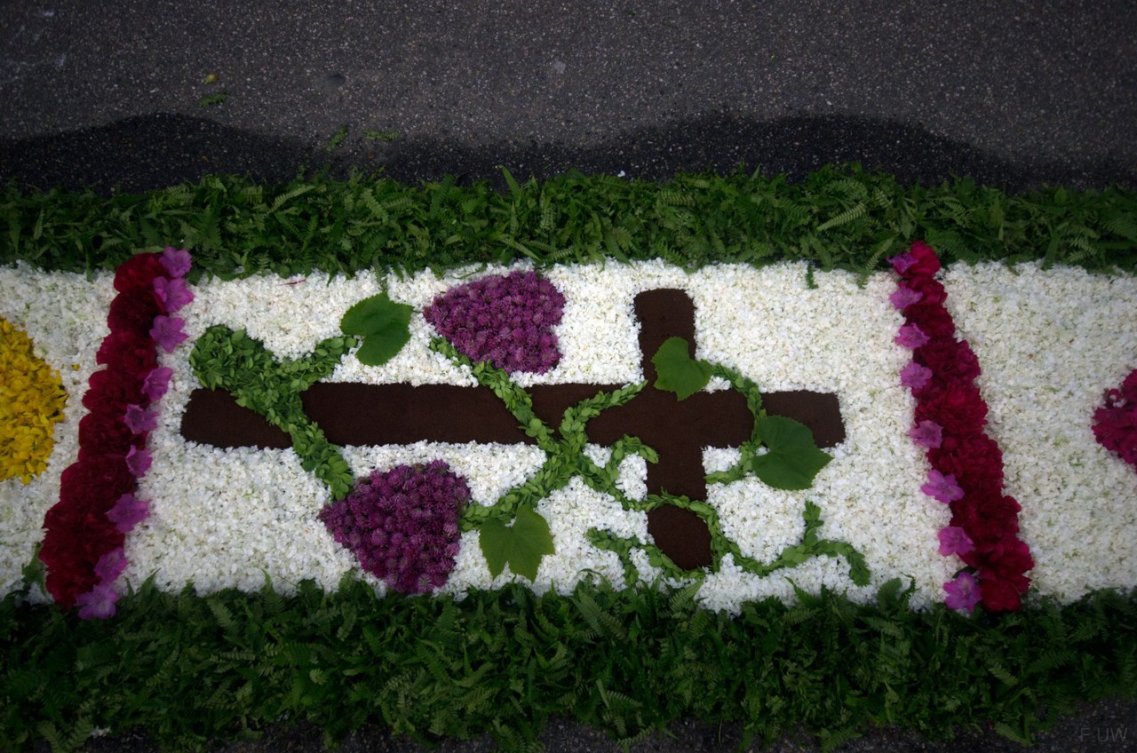 Am Festtag selbst bewegt sich über ihn unter Böllerschüssen, begleitet von Trachtenträgern, den Abordnungen der Vereine und unter den Gesängen von Chor und den Klängen der Trachtenkapelle die heilige Prozession.