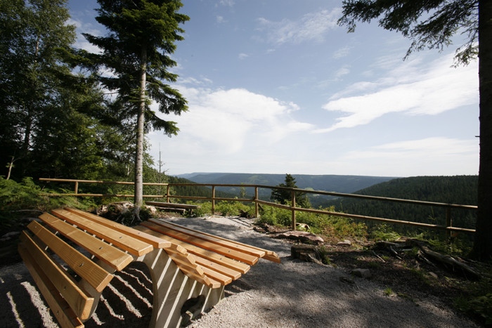 Huzenbacher Seeblick (916m)Der Aussichtspunkt "Huzenbacher Seeblick" bietet einen wunderschönen Ausblick auf den Huzenbacher See bei Baiersbronn. Der sogenannte Karsee entstand während der letzten Eiszeit aufgrund der Gletschererosion.