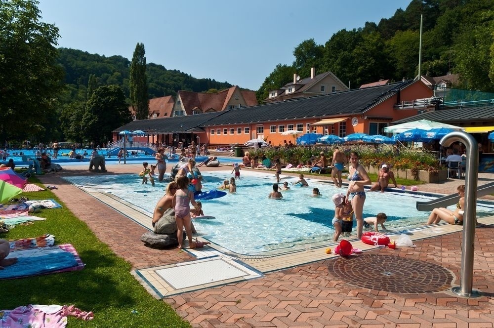 Direkt am Ufer der Nagold gelegenes Freibad mit 50m-Becken, Wasserrutschbahn, Schwall-und Massagedüsen, Kinderplanschbecken, Basketballfeld, Tischtennis und Kiosk.